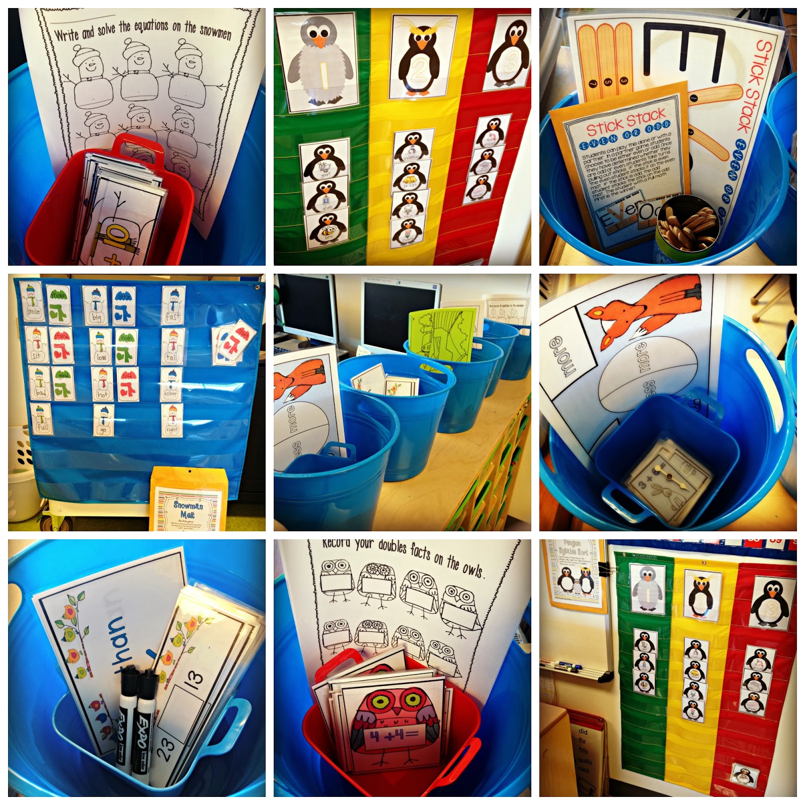 I have a question about your tubs also……..you call them "January math and literacy tubs"—-How often do you rotate your centers in these tubs? I am a fairly new teacher and I'm trying to figure out a good system for using centers. I feel like I need to switch out the centers daily in order to keep my students from getting bored and I am driving myself crazy trying to come up with simple centers that don't require a lot of prep work! (Cutting/laminating, extra manipulatives to purchase etc.) Any help you can offer would be GREATLY appreciated! (I teach Kinders in the morning and PreK in the afternoon…….I feel like I am going about things 100K different ways with NO true direction. And it's literally making me sick with the pressure that I'm putting myself under.)
