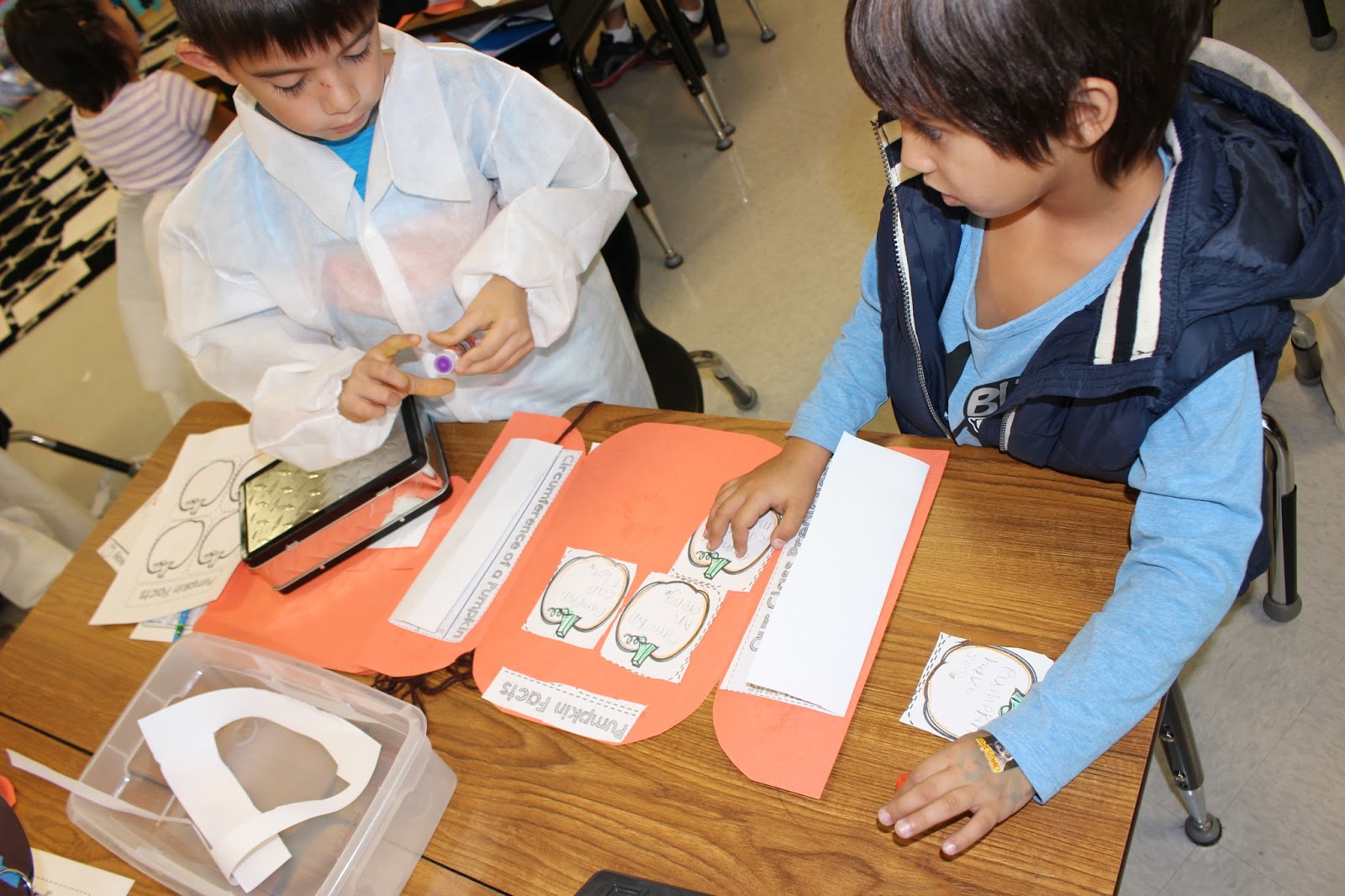 From apples we move on to pumpkins in October. Each one of these folding science books takes us about two to two and a half weeks to complete. Once we get through the pumpkin book, they have the formatting down and begin to really become independent with it.