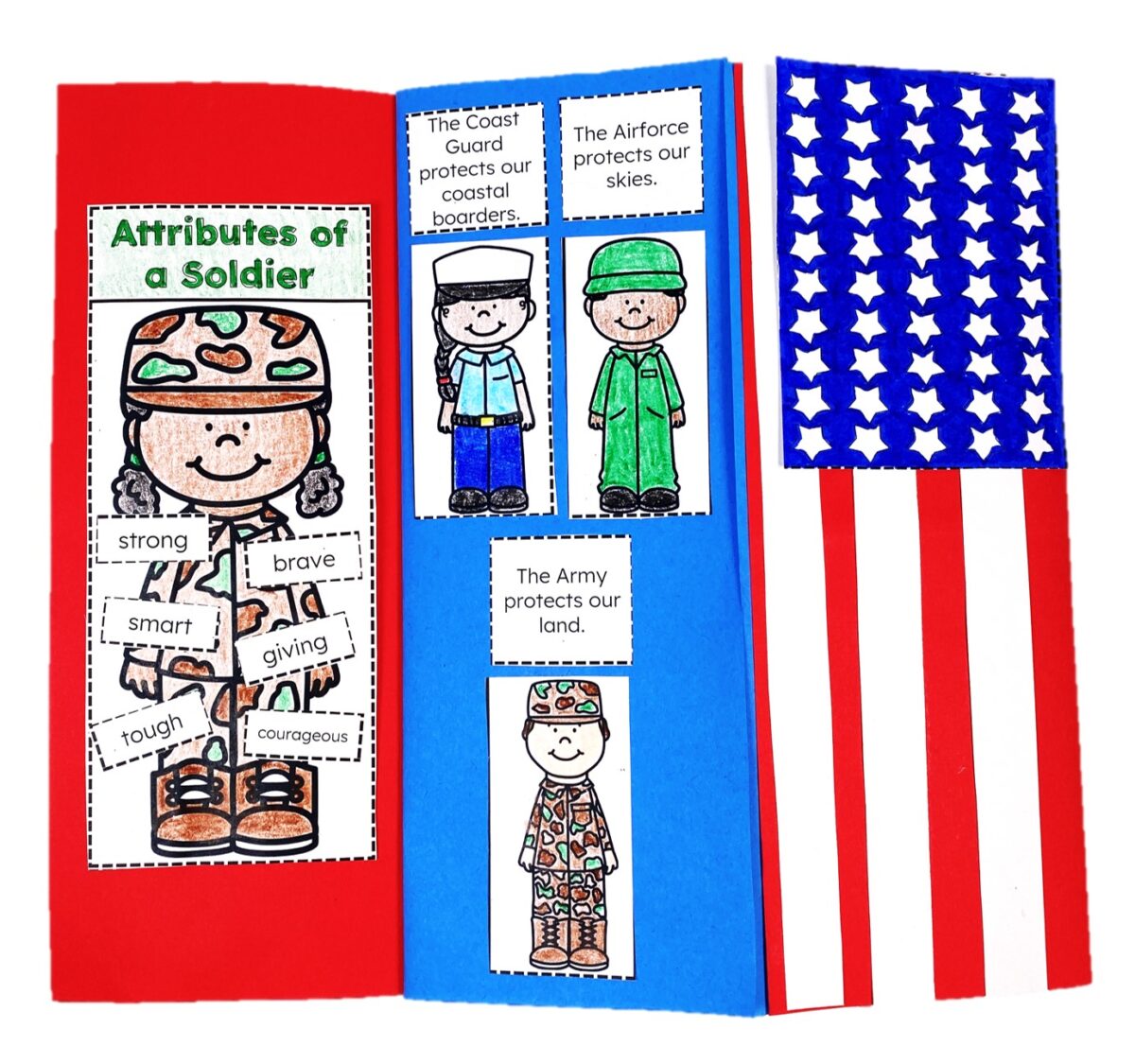 Students can create an American Flag Craft and fill it with writing and research about the branches of the military and veterans in this America the Brave Learning Lapbook.