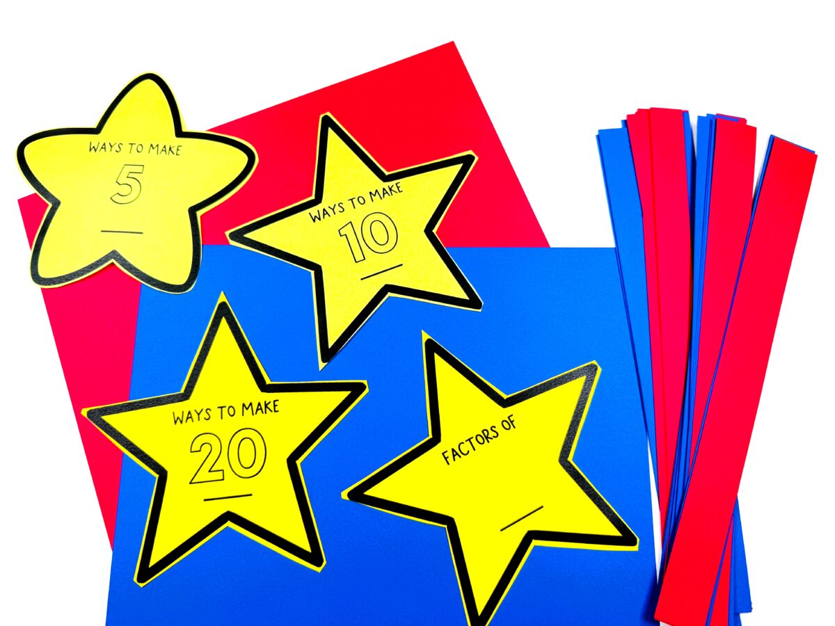 Thread the first strip through the star and glue the ends to form a link. Continue linking each equation in order.Display with pride.
