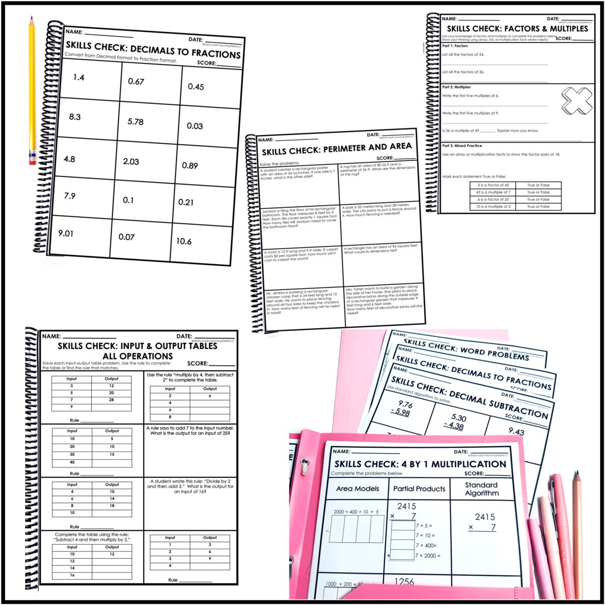 Fifth Grade Math skills checks provide 45 short one skill per page math assessments.