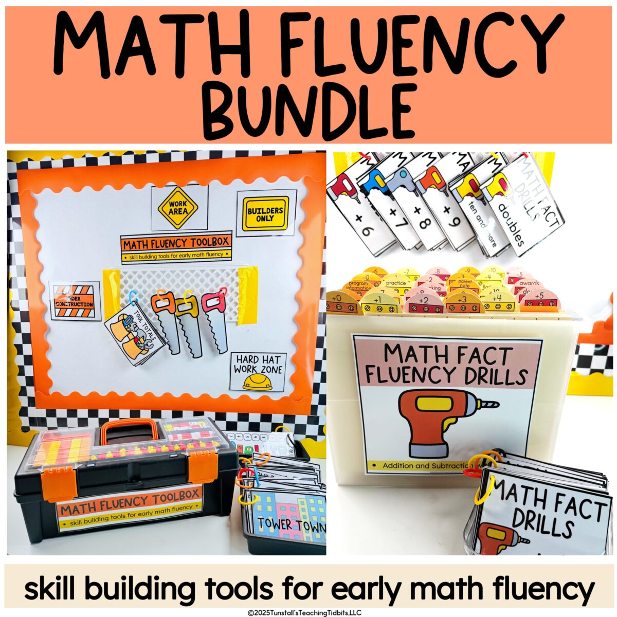 Setting up an area for these construction workers to build up their math skills is such a fun way to engage kindergarteners and first graders. The download contains links to the essential materials I used to make my Math Fluency Toolbox station area.