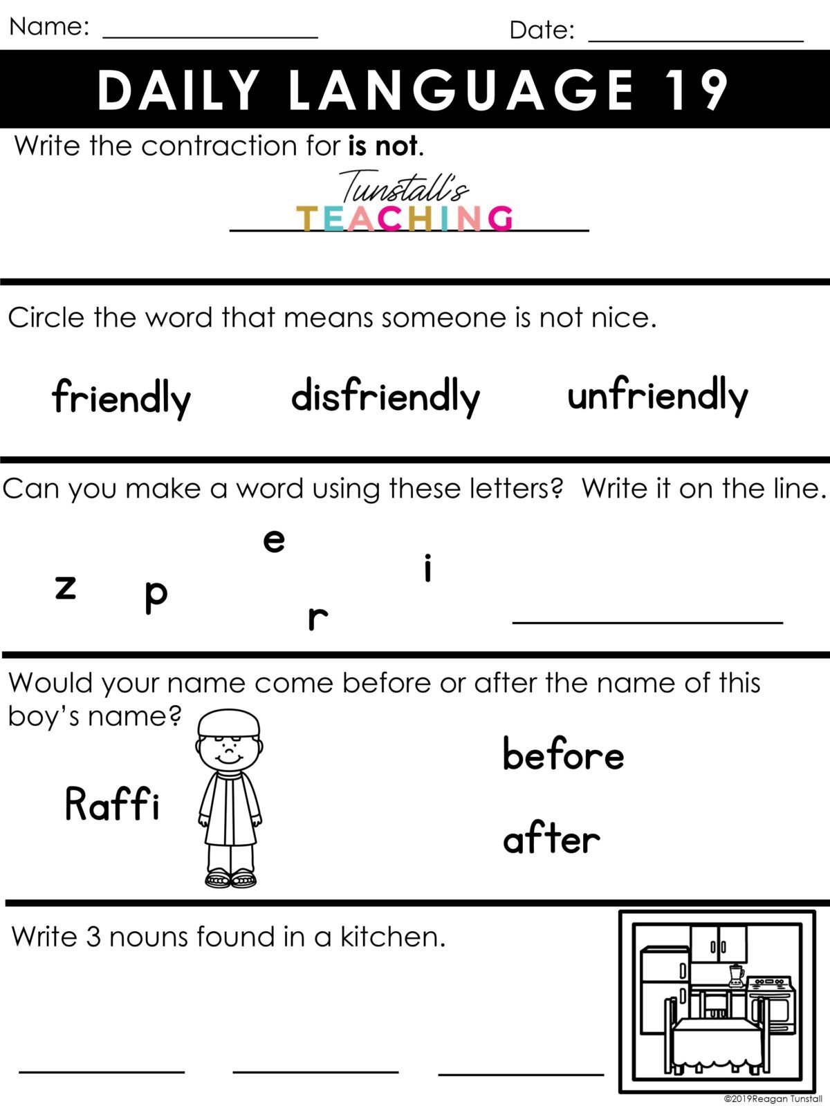 Kindergarten Daily Language Warm Ups