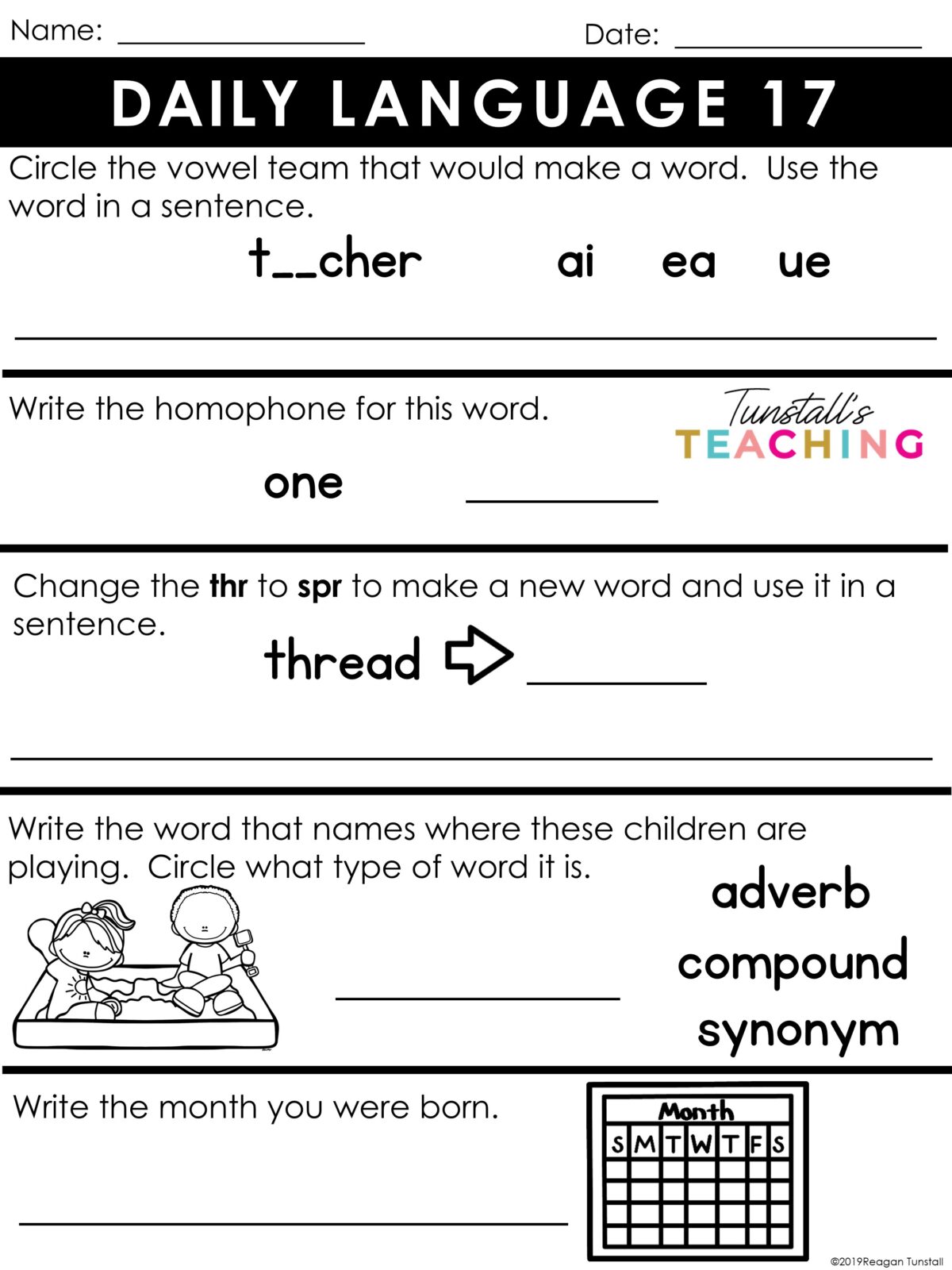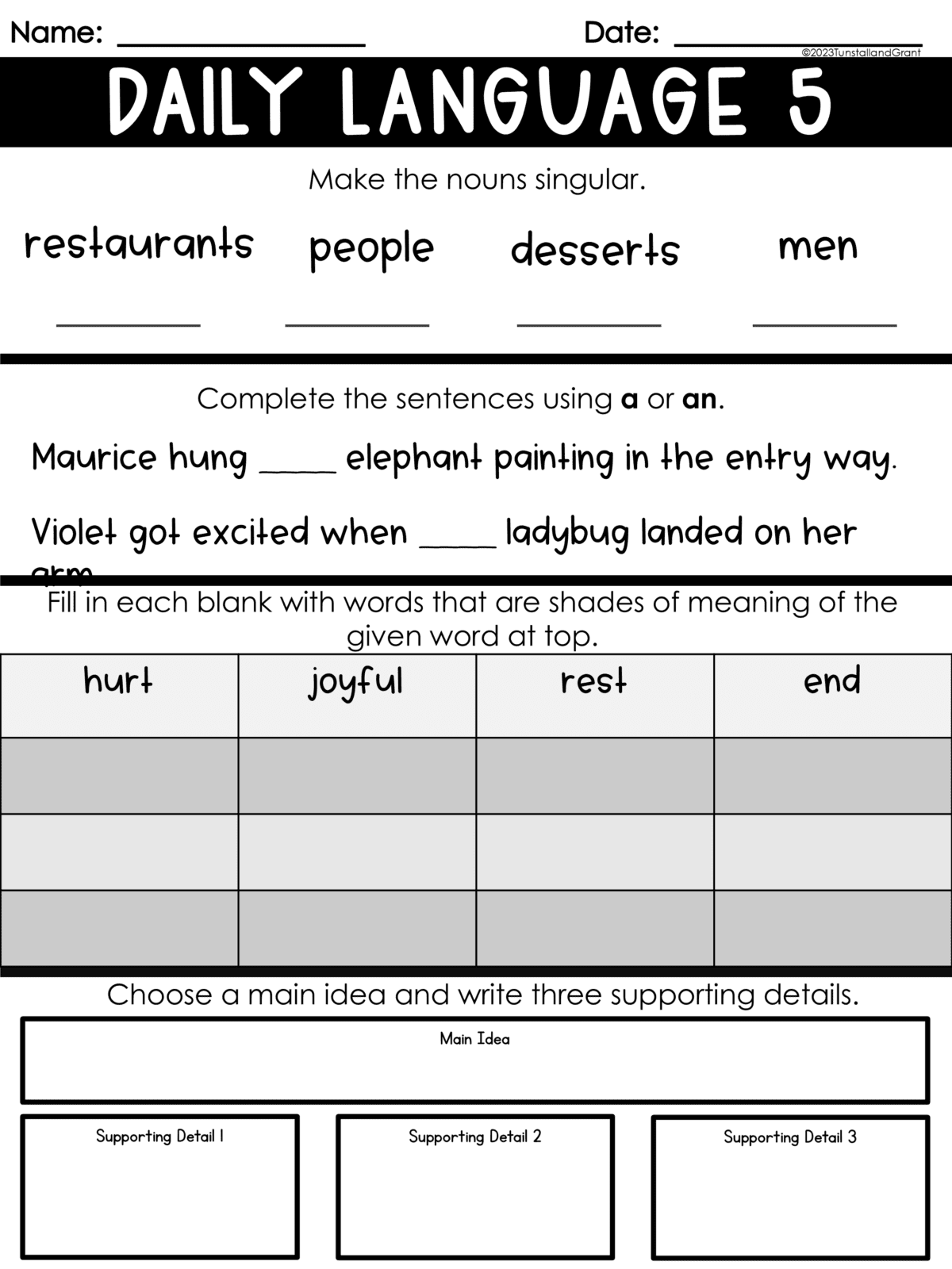 Third Grade Daily Language Morning Work