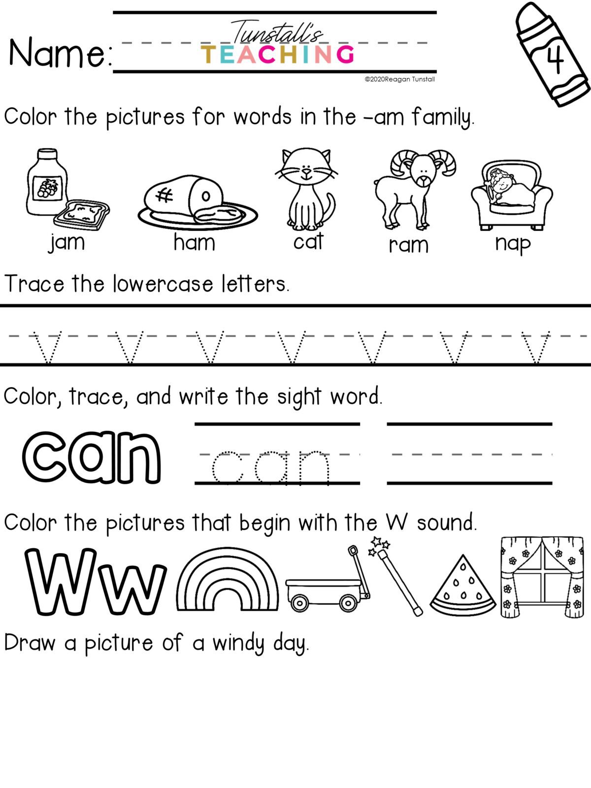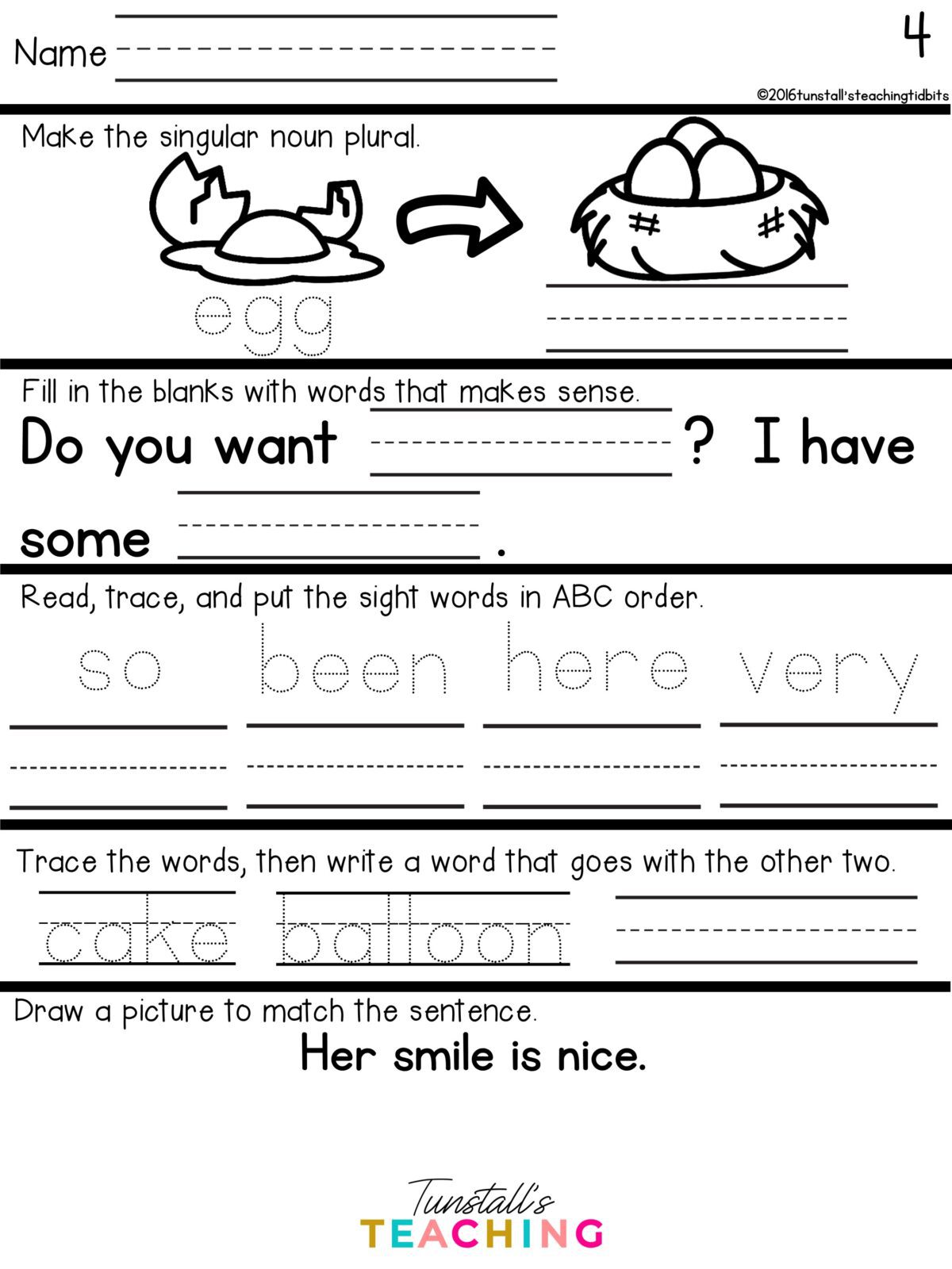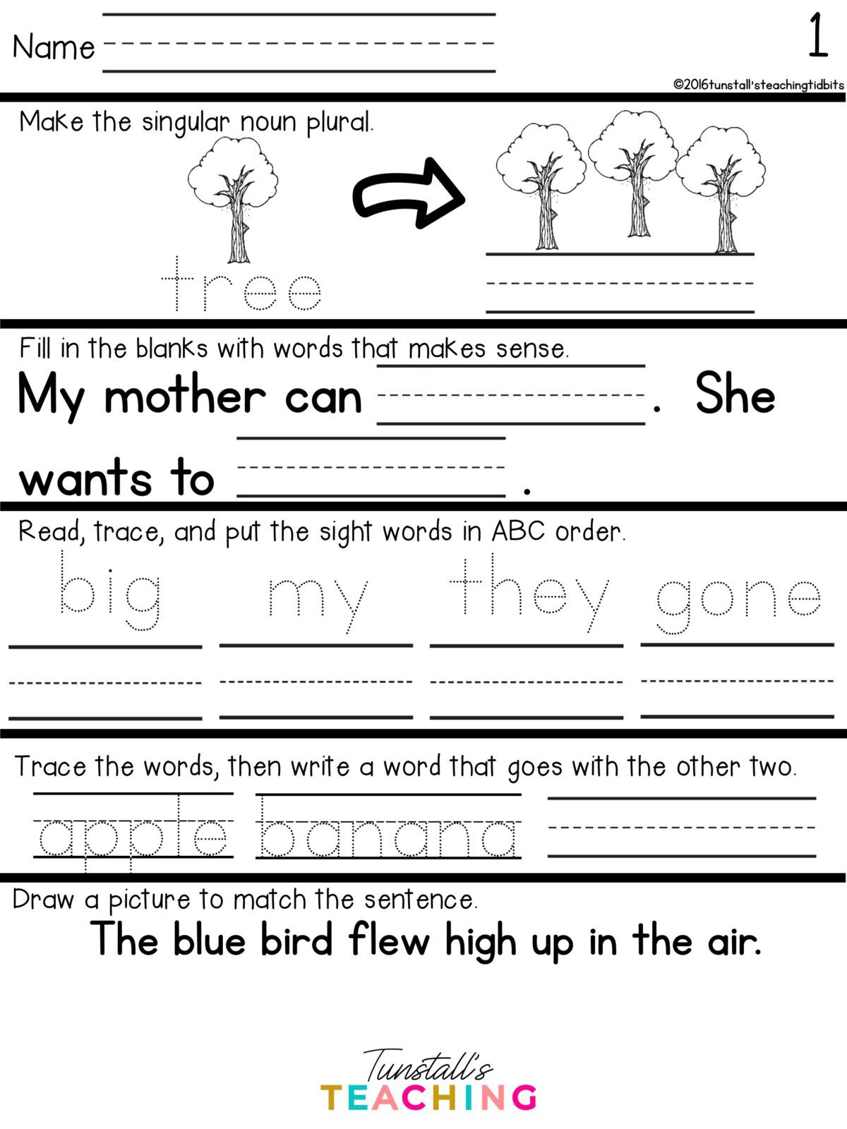 Language practice focuses on letter sounds, CVC word work, sentence formation, and early capitalization and punctuation. Because the layout remains consistent across the year, even young learners gain confidence quickly.