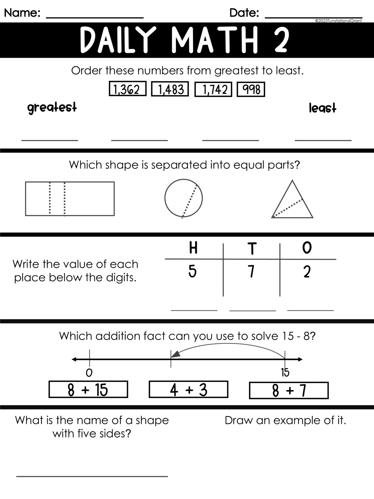Daily Math Warm Ups Skill Pages Morning Work Second Grade Bundle